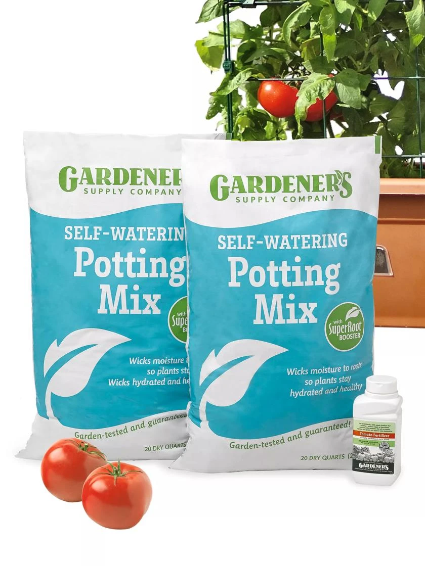 If you already own our high-performance Tomato Success Kit, get ready for another bountiful harvest with this newly enhanced Tomato Success Kit Replenishment Pack. It starts with 40 quarts of our exclusive Self-Watering Potting Mix with SuperRoot Booster. Superior wicking action gives this planting mix optimal moisture control to ensure plants get the water they need to thrive. Our SuperRoot Booster with MycoActive® Technology creates the living soil mix that plants need to thrive. The secret? Mycorrhizae, amazing microbes that form a partnership with roots to support vigorous and resilient plant growth. You’ll also receive 1 lb. of our Organic Tomato Fertilizer, a 5-6-5 slow-release fertilizer that provides tomatoes with all necessary nutrients for big, abundant fruit (contains peanut meal).